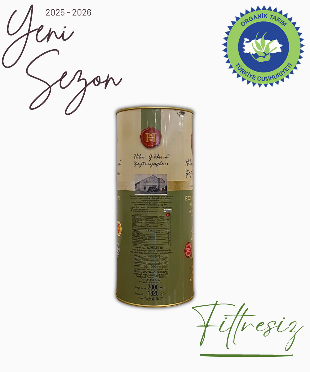 Hilmi Yıldırım Yeni Sezon Organik Erken Hasat, Soğuk Sıkım, Filtresiz, Natürel Sızma Zeytinyağı 2 L